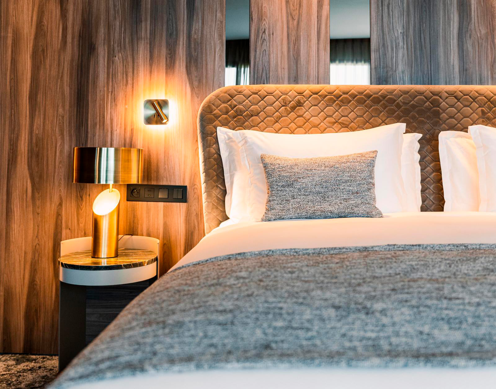 Ubicado en la impresionante costa de Tánger, en Marruecos, el Hotel Idou Malabata capta el espíritu de los navegantes — con interiores que cuentan historias a través de las texturas y los detalles. Para hacer realidad esta visión, se eligió Innovus Exquisite Dark (M6313), por su diseño elegante y una superficie que reproduce fielmente la calidez de la madera maciza. Aplicado en revestimientos de paredes, mobiliario y puertas, aporta autenticidad, calidez y una elegancia atemporal a cada espacio.