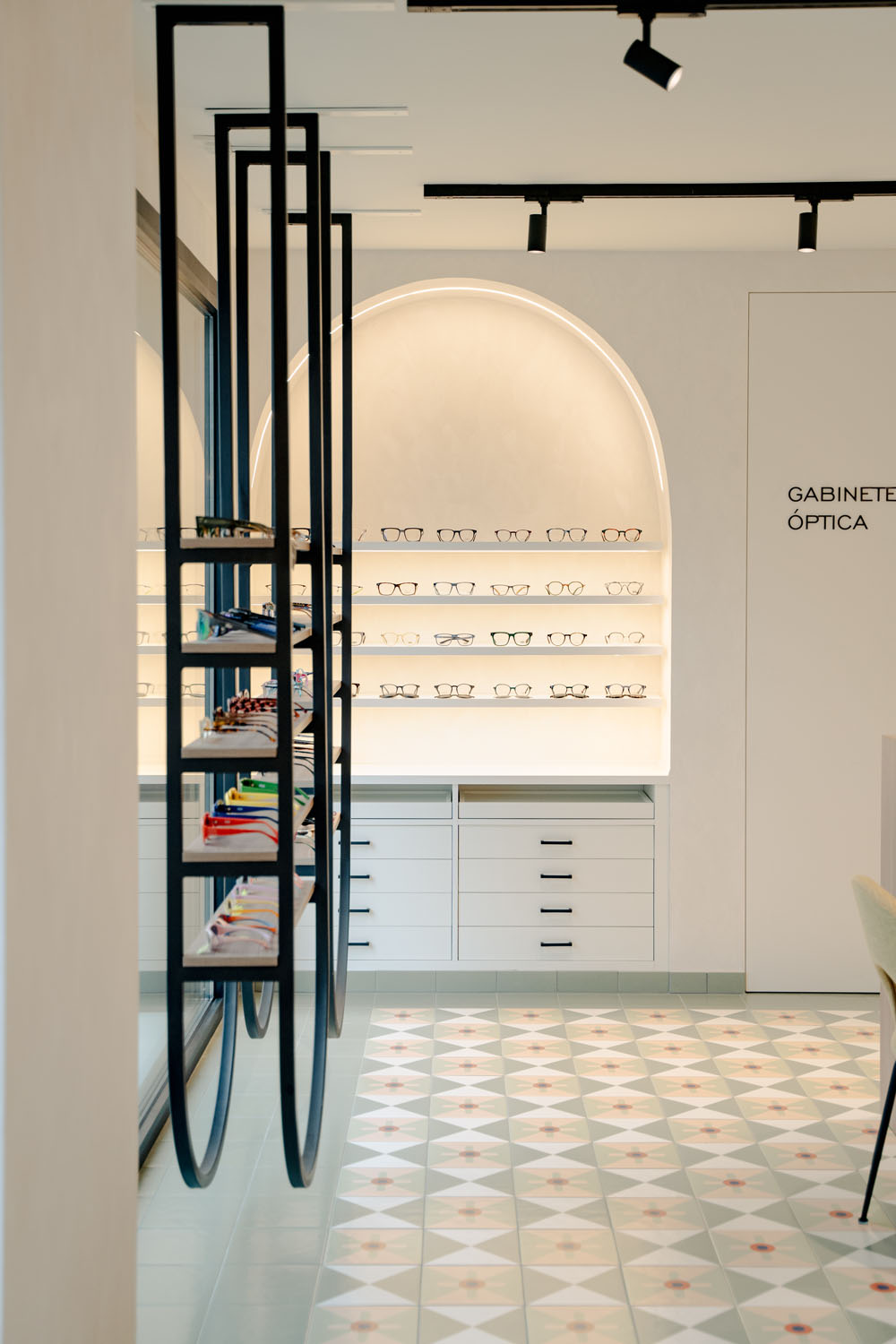 La iluminación, clave en el proyecto, emplea luminarias de Faro Barcelona de la gama architectural, como el carril Fost y el aplique Tond para resaltar productos y mejorar la visibilidad. Los amplios ventanales originales permiten la entrada de luz natural, conectando el interior con el entorno urbano. Este proyecto demuestra cómo una iluminación bien planificada puede transformar un espacio, no solo para el cliente de la farmacia, sino también para crear un espacio de trabajo cómodo y funcional.
